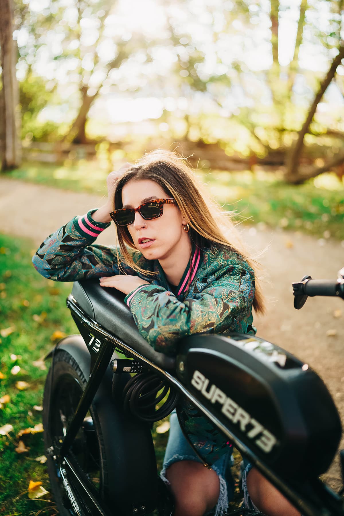 Shot entirely in natural light, the series focuses on texture, detail, and human presence: hands on grips, movement in denim, and sunlight filtering through trees. The intention was to create images that feel relaxed, confident, and naturally integrated into real environments.